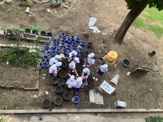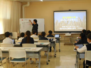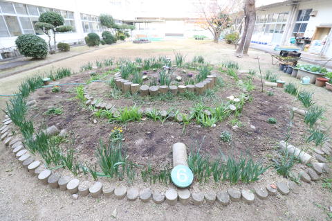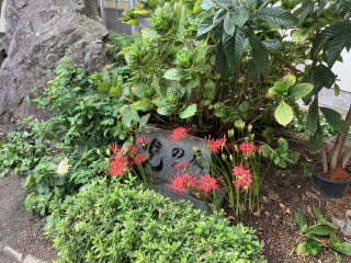 ようやく彼岸花が咲きました。学校周辺のあぜ道にも、赤い色が見えました。光の庭には、シロヒガン バナも植えられています。光の庭は、中央棟の(1977:昭和52年落成)建設にともなって設置、それ 以後に植えられたものだろうと思われます。