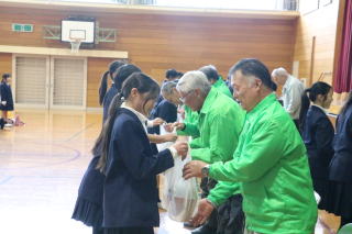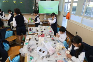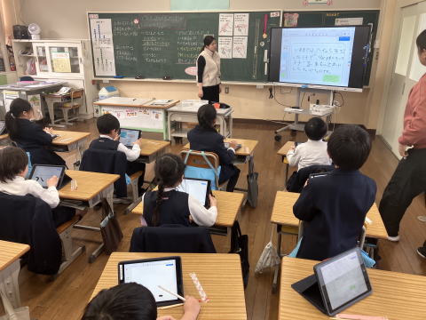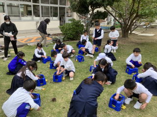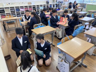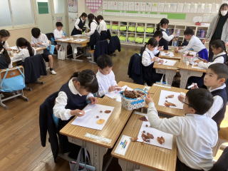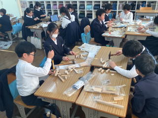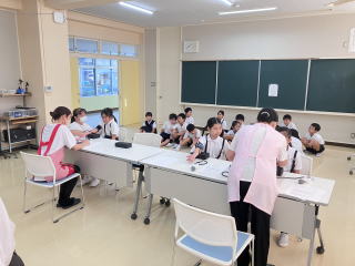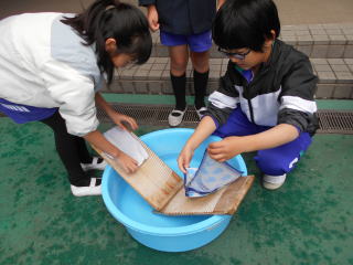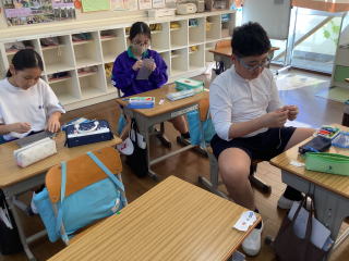 5年生では、家庭科「ソーイング はじめの一歩」の学習で、手縫いの練習を始めています。今日は、高室小サポート隊「タカフル」の方に、スペシャルサポーターとして参加していただきました。初めて針と糸で布を縫う子どもたちにとって、玉結びや玉止め、なみ縫いなどはちょっと難しい作業ですが、やさしくそっと手助けしていただき、少しずつ上手にできるようになってきました。