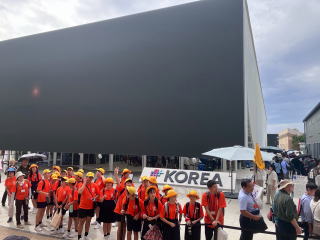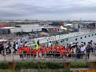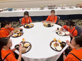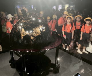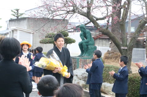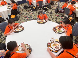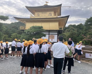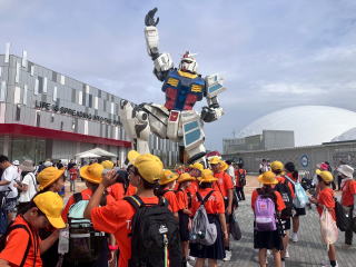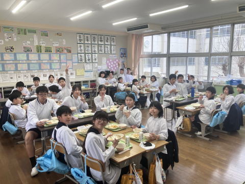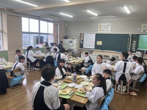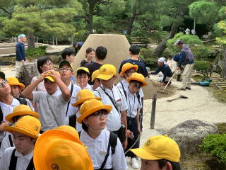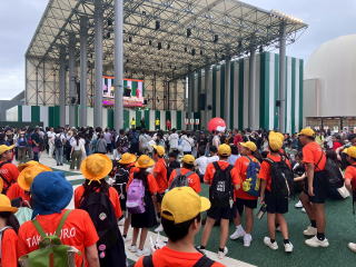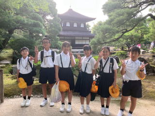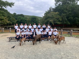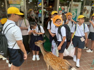 朝6時半に高室小学校を出発した修学旅行団は、今日、奈良県と京都府を訪れます。12時ごろに、奈良公園に到着しました。快晴の空に、東大寺が映えてとてもきれいです。お土産タイムの後は、奈良公園の鹿と対面。行儀よくお辞儀をする鹿に会えたでしょうか。