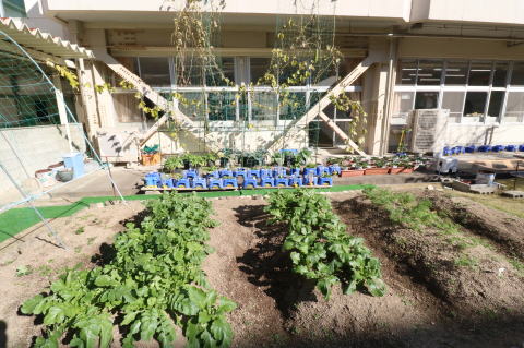 また、平成21年に「高室地区歴史保存会」によって建設された「たて穴式住居」は、老朽化のため令和元年に取り壊しました。平成28〜29年の校舎の改修に伴い中庭のうさぎ小屋、鳥小屋も撤去し、中庭の景観はずいぶんと開けたものになりました。 本年度はGIGAスクール構想の実現に向けて校内のWi-fi環境の整備工事が行われています。来年度からは、全児童にタブレットが順次配布されていきます。