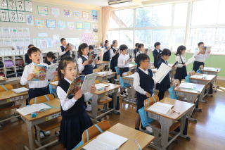 平成20年、校舎耐震化工事の完了。平成27・28年に校舎の改修を終え、校内はとてもきれいになりました。全教室にエアコンが整備され、トイレの洋式化(保温、ウォシュレット便座)も行われました。プールも平成19年に、FRP塗装、浄化施設の(自動運転)の導入、平成29年にはプールサイドの樹脂マット敷への改修で快適な水泳学習ができるようになりました。